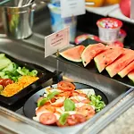 Ici, vous pouvez profiter d'un petit déjeuner gratuit sous forme de buffet. Les invités sont invités à dîner au restaurant à la carte sur place.
